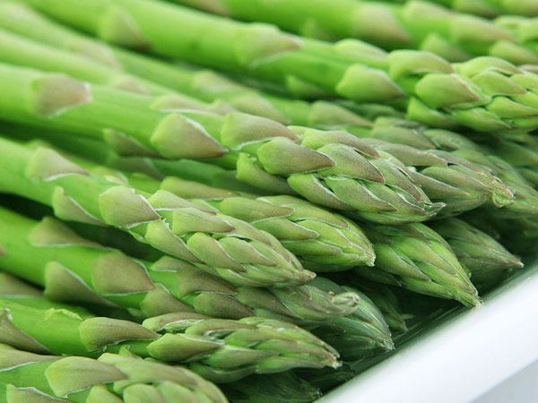 アスパラは、自然の植物ですから、太いものや細いもの、芯が曲がったり、筋張ったりしたものを混獲します。 このため、収穫したアスパラは、予冷前に定められた等級別に撰果します。 そして、予冷が完了したアスパラは、コンテナやダンボール箱に詰めて出荷しますが、宅配便で発送するアスパラは、鮮度保持袋に詰めてから箱に入れ、輸送途中での鮮度劣化の防止に努めています。 | ![]() 収穫したアスパラは必ず選果して出荷します |