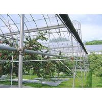 さくらんぼは、表皮がセルロース成分で覆われていますが、このセルロースは、水分を通すため、雨にあたると、水分が浸透して果肉部が膨張し、裂果してしまいます。 東北や北海道が、さくらんぼの主産地となったのは、生育期に雨が少ないためというのが理由ですが、それでも、雨は降ります。 樹上に屋根を架けるのは、収穫期を控えたさくらんぼを、雨から守るためなのです。 なお、梅雨の無い北海道は、さくらんぼ栽培の最適地で、生産されたさくらんぼの品質の高さは、全国各地の市場からも高く評価されています。 |