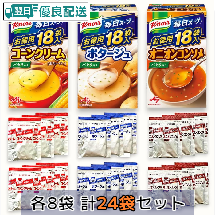 クノール カップスープ 3種類24袋入りセット(各8袋) アソート インスタント 詰め合わせ コーン ポタージュ オニオンコンソメ