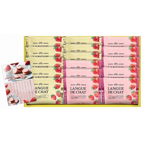 福岡県産あまおうを使用したいちごピューレを練り込んだサクサクのラングドシャクッキーでオリジナルのミルクチョコとホワイトチョコをサンドしました。優しい甘さと軽い食感、滑らかなくちどけをお楽しみください。