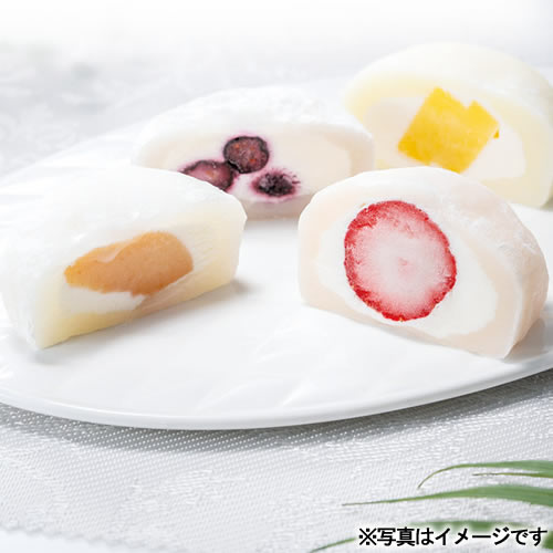 優しい甘みのクリームとふわふわのお餅で果物を包みました。とろける食感をお楽しみください。冷蔵庫で2時間程度解凍してお召し上がりください。