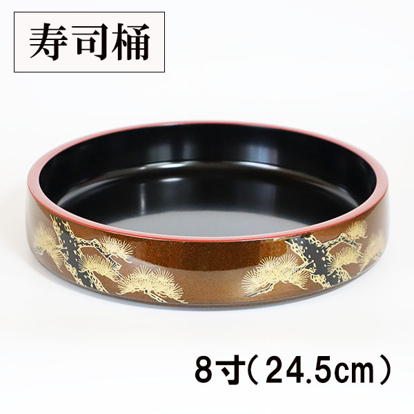寿司桶 日本製 梨地老松 24cm 出前 パーティ すし桶 寿司皿 すし 寿し 越前漆器 割れない 和食器 業務用漆器