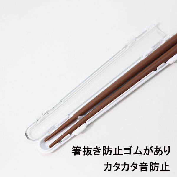 箸抜け防止ゴムが付いていて、ケースを開閉しなくても、お箸を抜き差しだけで使用できます。