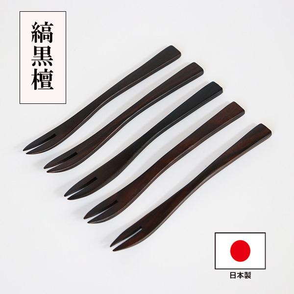 木製 フォーク ミニフォーク 黒檀 5本 セット 日本製 国産 13cm 和菓子フォーク デザートフォーク 果物 小さい 高級 縞黒檀