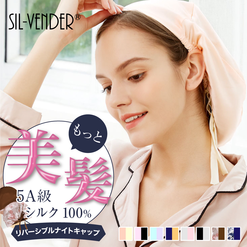 ナイトキャップ メール便送料無料 シルクナイトキャップ シルク100% 二層 立体 リバーシブル ロングヘア リボン ダメージヘア 保湿 美髪 艶髪