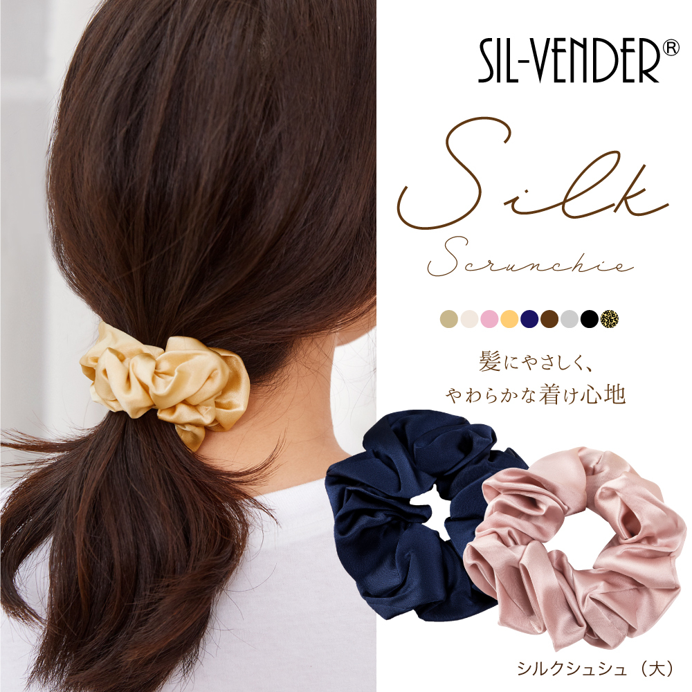シュシュ メール便送料無料 シルク100% 大きめ ビッグ ヘアアクセサリー ヘアゴム 大人 キッズ おしゃれ しゅしゅ 抜け毛 かわいい 美髪 艶髪