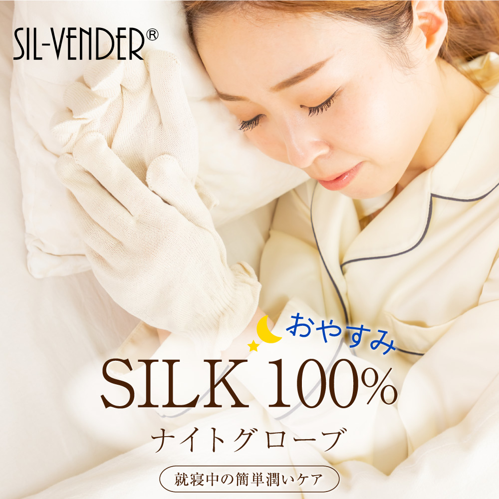 シルク100% おやすみ手袋 送料無料 ナイトグローブ 夜用 保湿 潤い 手袋 グローブ シルク 絹 肌荒れ 敏感肌 手荒れ 対策 就寝 ハンドケア スキンケア 母の日