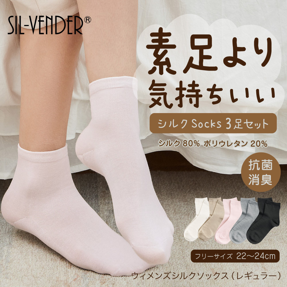 靴下 シルク ソックス 3足セット レディース 22-24cm メール便送料無料 冷え取り 防臭 消臭 抗菌 敏感肌 温活 防寒 冷え対策 蒸れない