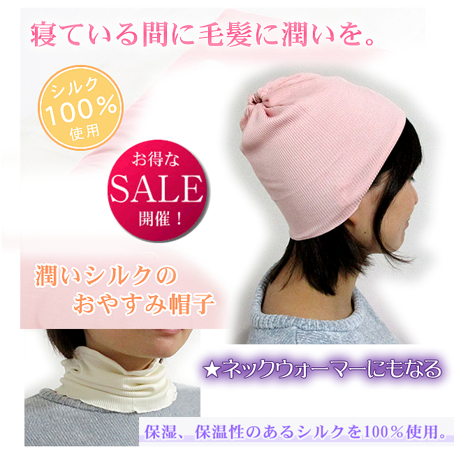 ■潤いシルク100%のおやすみ帽子&ネックカバーの2WAY 46%OFF【数量限定ほぼ半額!】寝ている間に毛髪に潤いを | |||||||