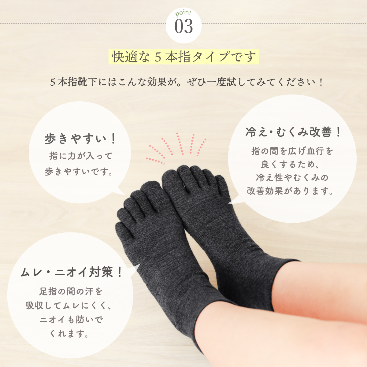 主に冬場に着用されることを考えて、絹コットン 5本指フィットより