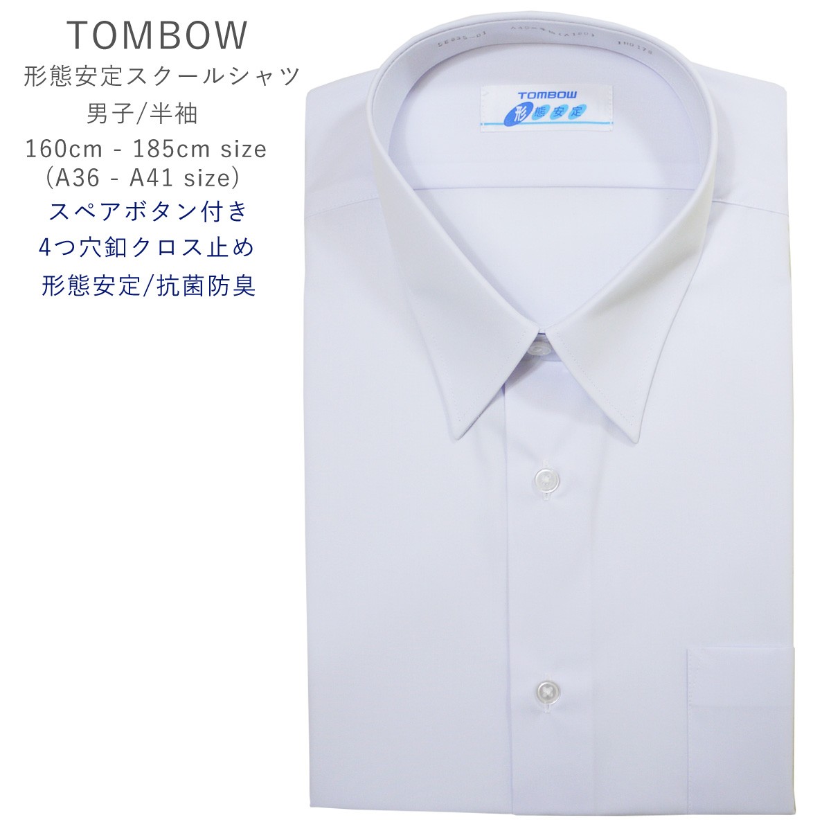 制服 シャツ 男子 半袖 TOMBOW トンボ カッターシャツ 快清シャツ 形態安定 抗菌防臭 スクールシャツ 長袖シャツ WHITE 高校生 中学生 5E835-01