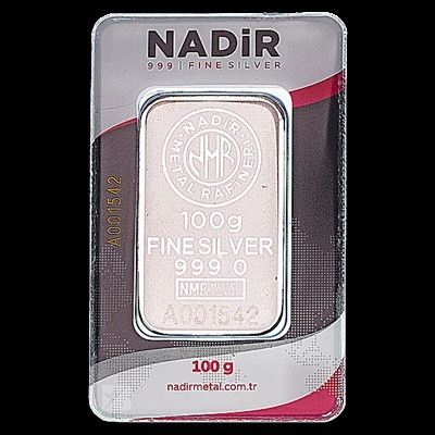 銀の品位が .999 で、トルコの貴金属精製所「ナディール貴金属精錬所」によって製造されている100g銀インゴットです。イスタンブールに本社を置くナディールは、トルコを代表する貴金属精製所の 1 つです。ナディールは、ロンドン地金市場協会 (LBMA) の銀のグッド・デリバリー・リストにリストルコで唯一の銀精錬所でもあります。