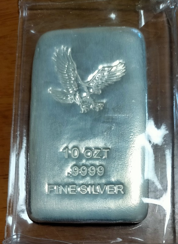 純度.9999が保証された、CNT製の10オンスのシルバーバーです。