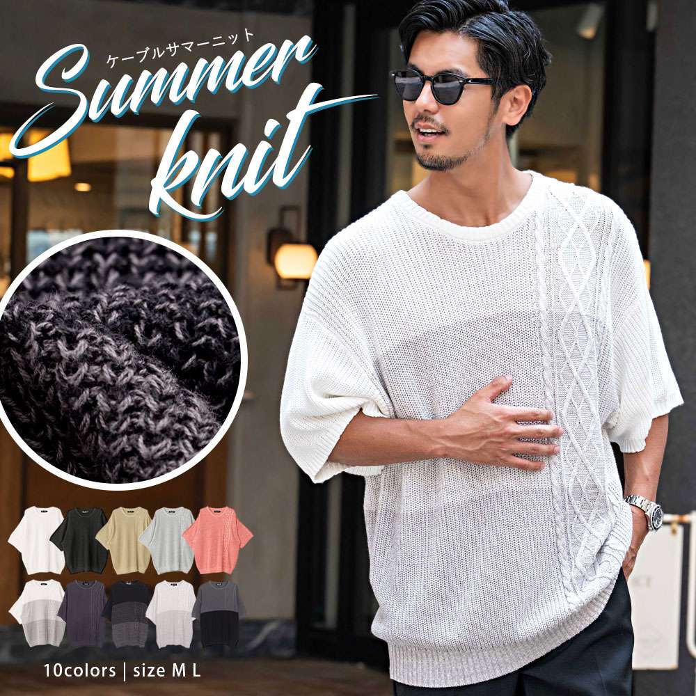 サマーニット メンズ ブランド おしゃれ 大人 ファッション セーター 5分袖 5分丈 五分袖 五分丈 半袖 ケーブル編み ビッグニット 切替 ビッグシルエット 大きいサイズ ゆったり 半袖ニット Tシャツ ホワイト ブラック ベージュ グレー ピンク チャコール 黒 白 M L きれいめ きれい目 きれいめコーデ きれい目コーデ リゾート シンプル 無地 CavariA キャバリア 夏 春 男性 男 父の日 父の日ギフト 父の日プレゼント 20代 30代 40代 メンズファッション 東京 プレゼント 誕生日 記念日 贈り物 ギフト