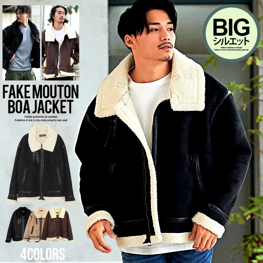 ムートンコート メンズ B3 黒 ジャケット ブルゾン ボア アウター 防寒 大きいサイズ 秋 冬