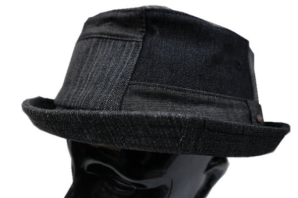 送料無料 RUBEN デニム ポークパイ ハット ブラック ロールアップ メンズ レディース 男女兼用 帽子 サイズ調整可能