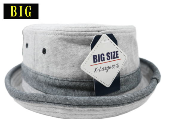 送料無料 大きいサイズ RUBEN スウェット ポークパイ ハット グレー ロールアップ 男女兼用 帽子 サイズ調整可能 Bigsize