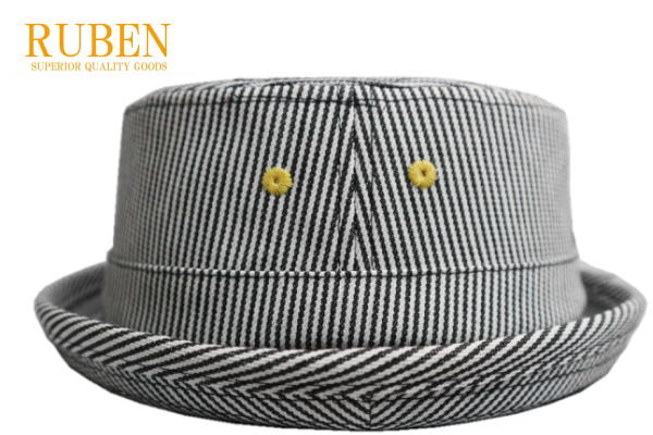 送料無料 RUBEN ヒッコリー柄 ポークパイ ハット ロールアップ メンズ レディース 男女兼用 帽子 サイズ調整可能 フリーサイズ
