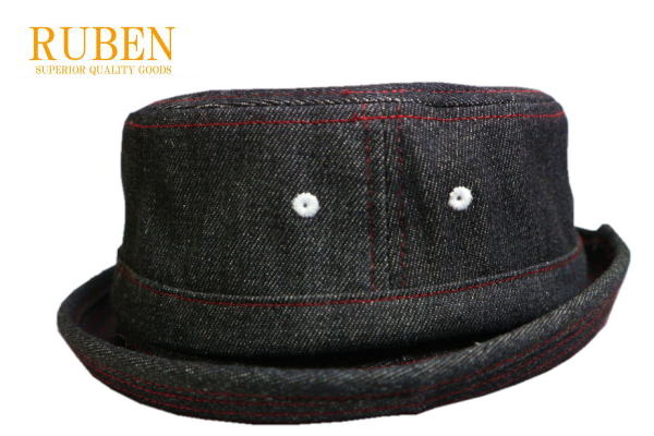 送料無料 RUBEN デニム ポークパイ ハット ロールアップ ブラック メンズ レディース 男女兼用 帽子 サイズ調整可能 フリーサイズ
