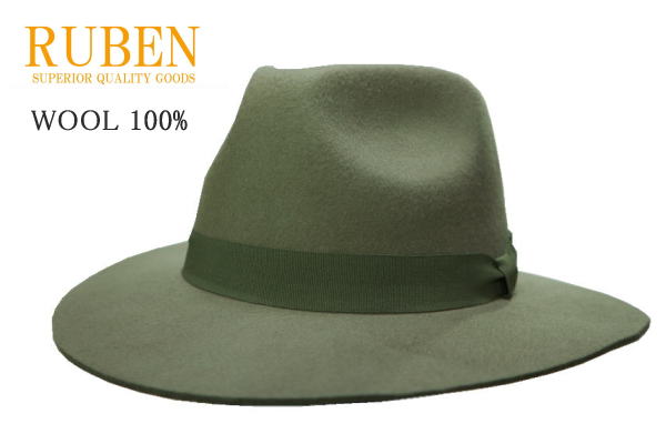 送料無料 RUBEN つば広ハット フラット 中折れハット ツバストレート 男女兼用 秋冬 ウール100% グレー