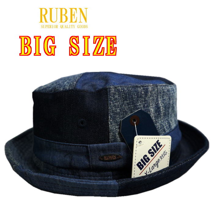 送料無料 大きいサイズ RUBEN デニム パッチワーク ポークパイ ネイビー ロールアップ ジーンズ メンズ 帽子 Bigsize