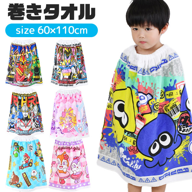 爆買 巻きタオル ラップタオル プールタオル タオル キャラクター 60cm 小学生 幼稚園 子供 夏 水遊び 水泳 習い事 キッズ 男の子 女の子 綿100%