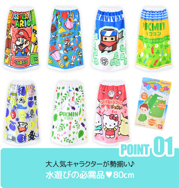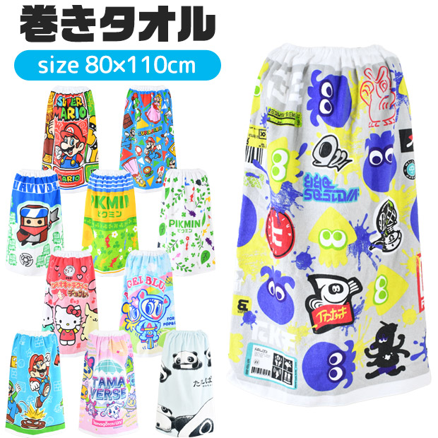 巻きタオル キャラクター プールタオル 水泳タオル タオル プール 水泳 子供 キッズ 小学生 80cm 子ども ラップタオル まきタオル 水泳用品 水着用品 ネームタグ付き 綿100% 夏 海水浴 海 スイミング 水遊び かっこいい かわいい スプラトゥーン3 スーパーマリオ マリオ タダサバイバー ピクミン サンリオ ハローキティ エンジェルブルー たまごっち たれぱんだ 80×110cm
