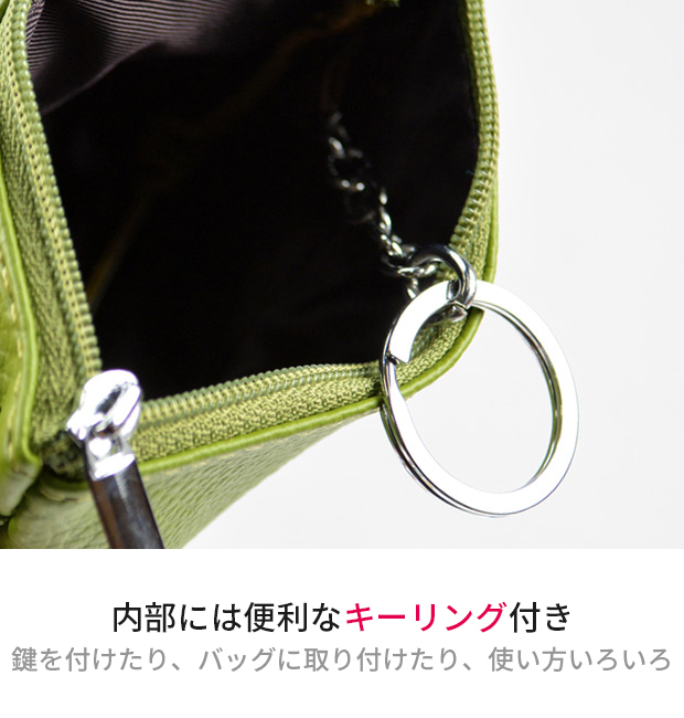 本革 コインケース 小銭入れ 小型財布 ファスナー キーケース 牛革 本皮革 レザー 革 カラーレザー リアルレザー キーリング 鍵 ケース