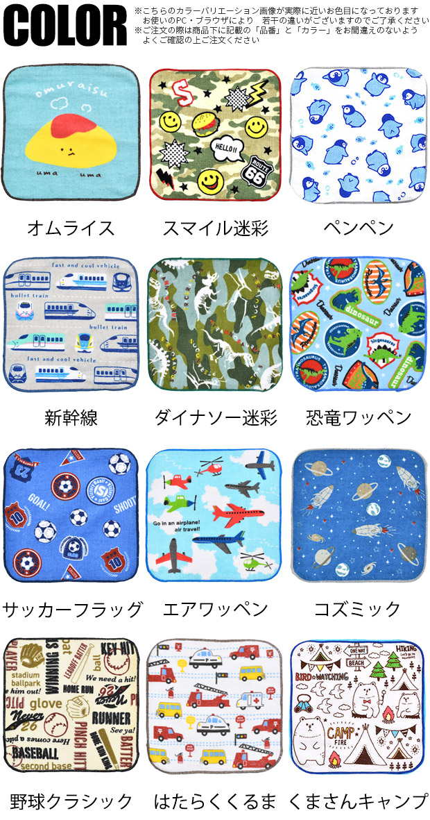 爆買 通園・通学に必須!子供服のポケットに入るミニサイズハンカチの登場です!!柔らかく安心な肌ざわりの綿100%ミニタオル。使い勝手の良い20×20cmサイズです♪毎日の洗い替え用にはもちろん、プチギフトにもおすすめです。ミニタオル 子供 ミニタオルハンカチ 20cm ハンドタオル 子ども ハンドタオル まとめ買い ハンドタオル かわいい ハンドタオル 保育園 小学校 幼稚園 男の子 女の子 キッズ ジュニア ハンカチ ミニタオルハンカチ 綿100% コットン プリント かっこいい 男の子 BOYS ボーイズ プチタオル プレゼント ギフト プチギフト 子ども会 新幹線 電車 車 カワウソ ペンギン サッカー 迷彩 ロボット 飛行機 宇宙 カエル アニマル しろくま モリッツ ミントイン ブルー カーキ グリーン イエロー マルチカラー パープル 未就学児 小学校低学年 小学校高学年 mini-towel-boy●サイズ:男の子・ミニタオル【20x20cm】詳細は画像にてご確認下さいませ●カラー:全23色