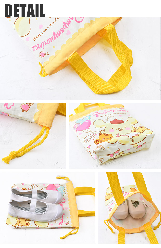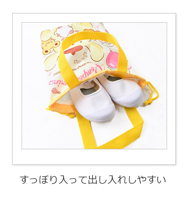 ハローキティ、マイメロディ、クロミ、シナモロール、ポムポムプリンなど人気キャラクターがデザインされた、子どもに大人気のシューズバッグです。