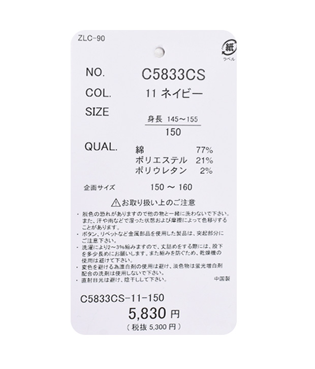 ●素材:綿77%・ポリエステル21%・ポリウレタン2%