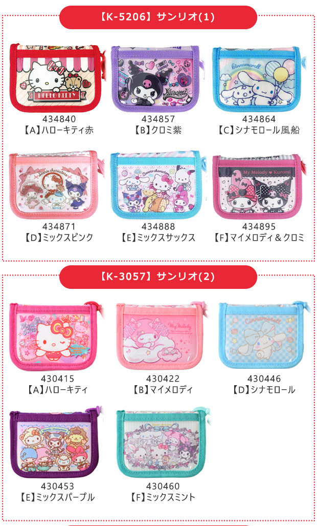 ハローキティ、クロミ、シナモロールなど、可愛らしいデザインが揃っています。