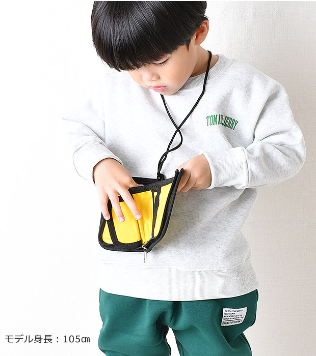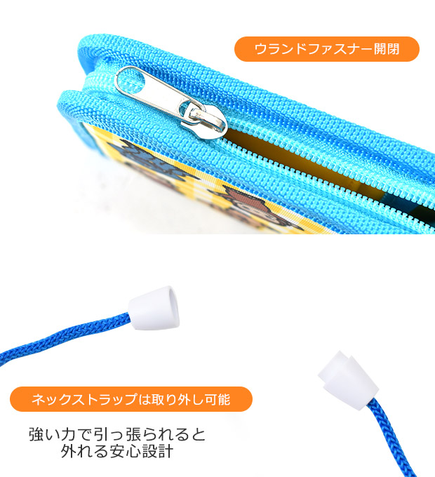 首からかけられるネック紐付きで、外出時も安心。幼稚園や小学校での使用に最適です。