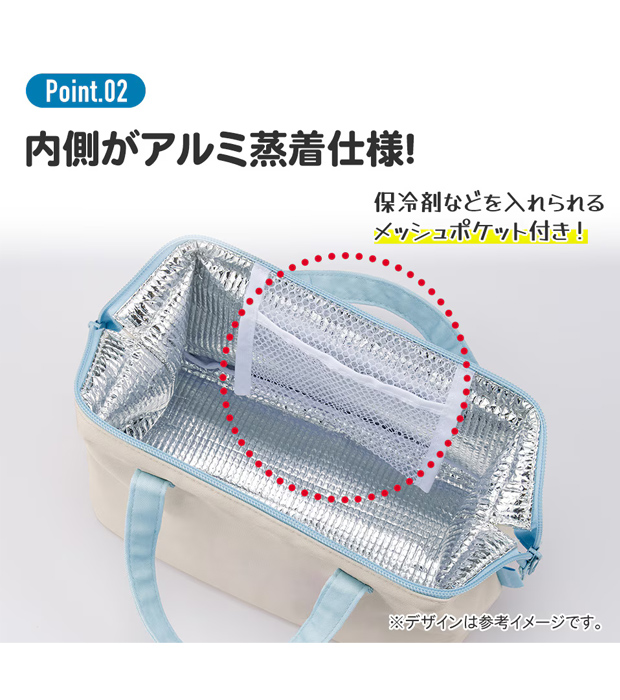 保冷剤などを入れられるメッシュポケット付き。