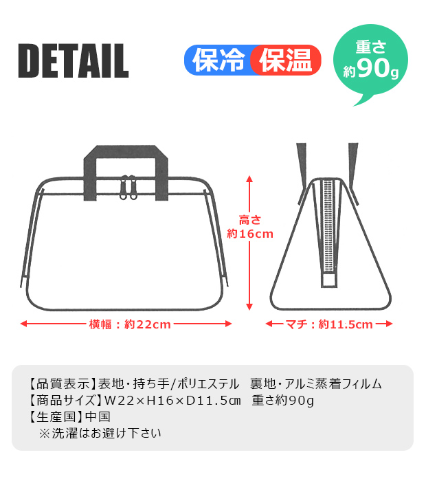●素材:【表地・持ち手】ポリエステル 【裏地】アルミ蒸着フィルム