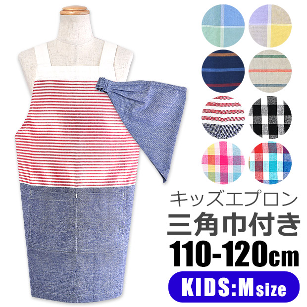 キッズ エプロン 子供用 三角巾付き 子供用 おしゃれ 着脱簡単 可愛い キッズ 女の子 男の子 110-120cm Mサイズ 保育園 幼稚園 三角巾 セット かぶるだけ ゴム ポケット付き 子供エプロン かんたん エプロンセット 綿100% フレンズヒル キッズ エプロン 子供用 エプロン 三角巾 セット 子供 2点セット ボーダー チェック レッド ブルー ブラック ピンク 未就学児 小学生