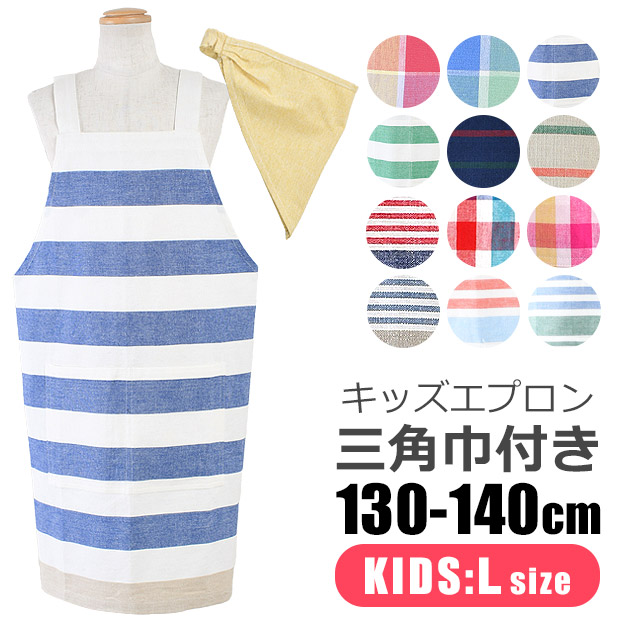 爆買 三角巾つきキッズエプロンの登場です!お子さまの肌に直接触れるものだから、吸湿性に優れたやわらかな肌ざわりのコットン100%天然素材。綿100%のしっかりとした素材のH型エプロン♪バックはゴム仕様だから、被るだけのカンタン着脱!幼稚園・学校での調理実習、自宅でのお手伝い、イベント等に大活躍!キッズ エプロン 子供用 三角巾付き 子供用 おしゃれ 着脱簡単 可愛い キッズ 女の子 男の子 130-140cm Lサイズ 保育園 幼稚園 三角巾 セット かぶるだけ ゴム ポケット付き 子供エプロン かんたん エプロンセット 綿100% フレンズヒル キッズ エプロン 子供用 エプロン 三角巾 セット 子供 2点セット おしゃれ かわいい チェック ボーダー ブルー グリーン レッド ネイビー ブラック ピンク ベージュ 未就学児 小学生