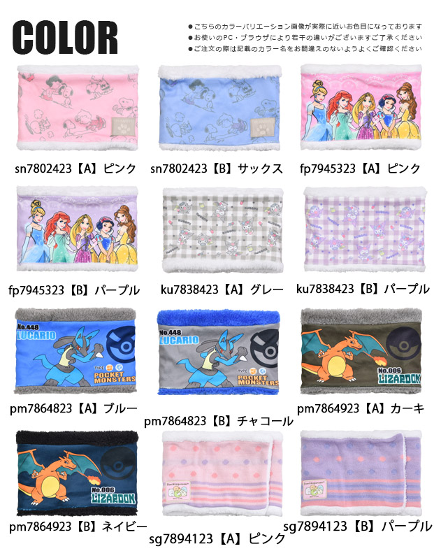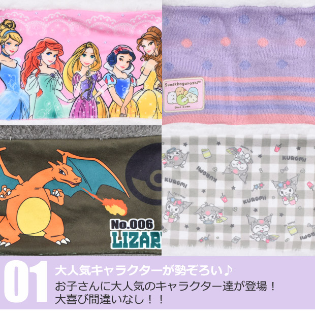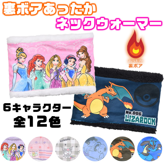 ネックウォーマー 暖かい 裏ボア キッズ ジュニア キャラクター かっこいい かわいい 秋 冬 ディズニー ポケモン プリンセス クロミ すみっコぐらし スヌー
