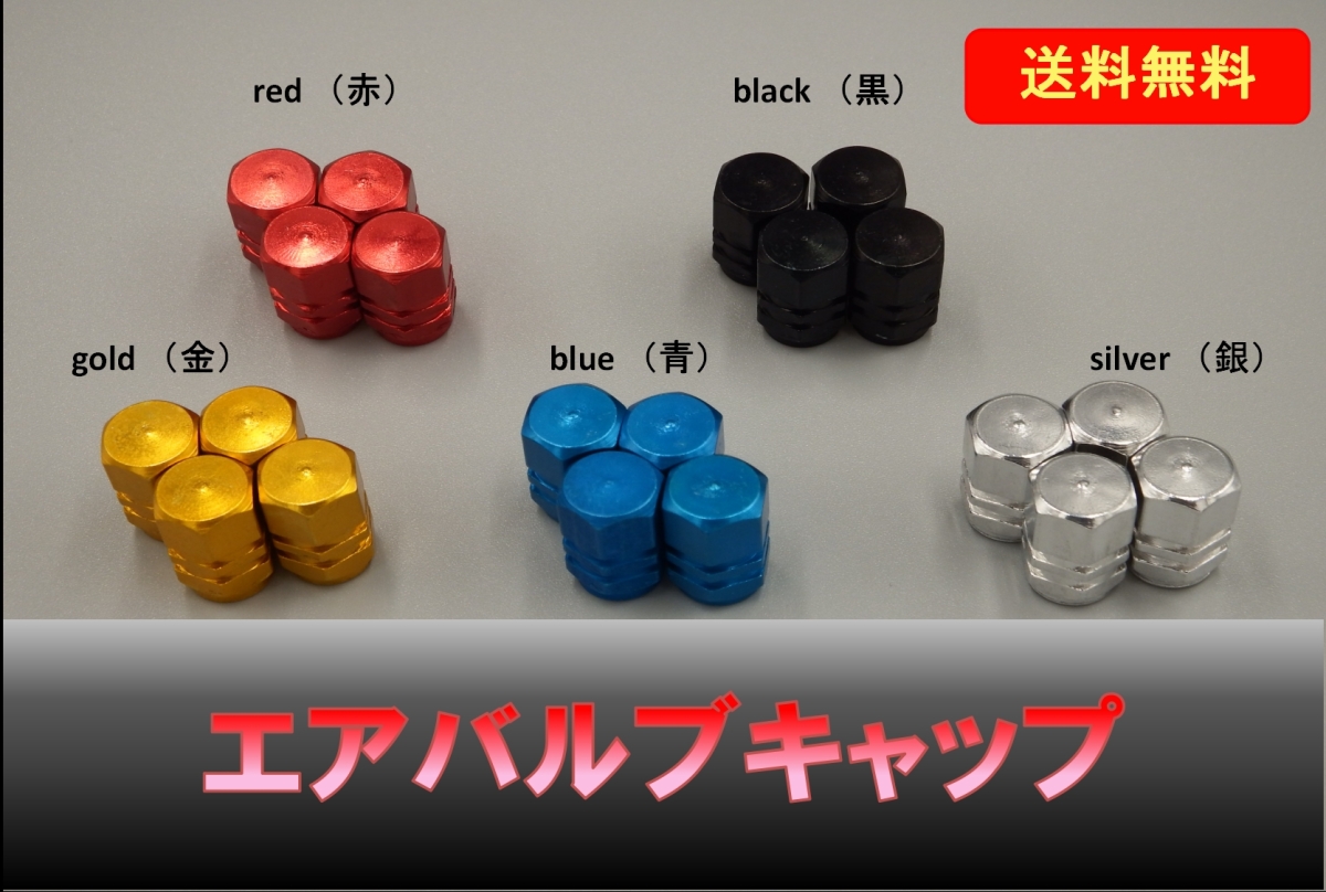 エアバルブキャップ アルミ製 4個セット 送料無料 汎用 バルブキャップ ドレスアップ かんたんおしゃれ 5色 gold red black blue silver