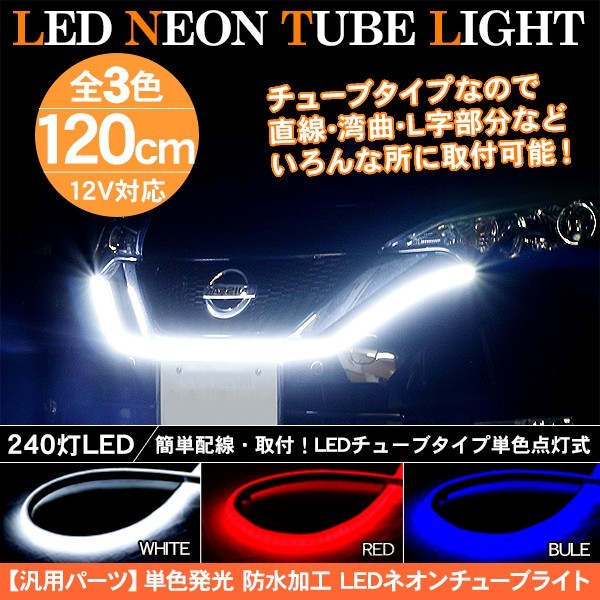 LED テープライト シリコンチューブライト 120cm 2本セット 全3色 デイライト アイライン ポジションランプ LEDチューブ DIY カスタムパーツ