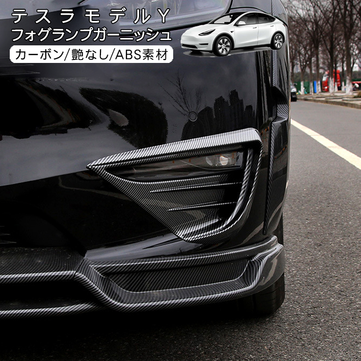 テスラ モデルY フォグランプカバー カーボン調 ブラック Tesla Model Y フォグランプ ガーニッシュ 外装 カスタム パーツ