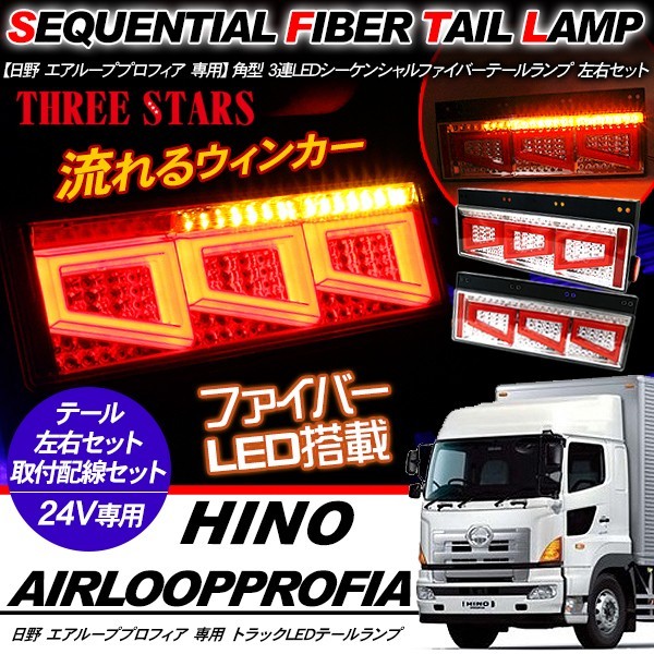 プロフィア シーケンシャル ファイバー LED テールランプ 左右セット 専用配線セット 3連 角型 車検対応 保証付 流れる テール トラック用品 外装パーツ