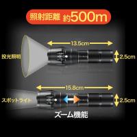 最長照射距離500Mと最大出力光束1800ルーメンに達します。