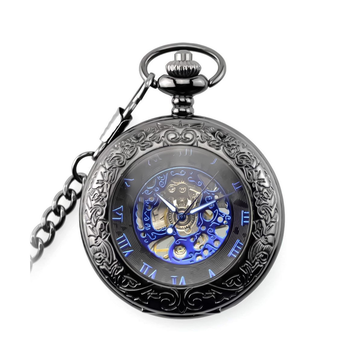 懐中時計 レトロ スチームパンク メタルブルー ブラック 送料無料