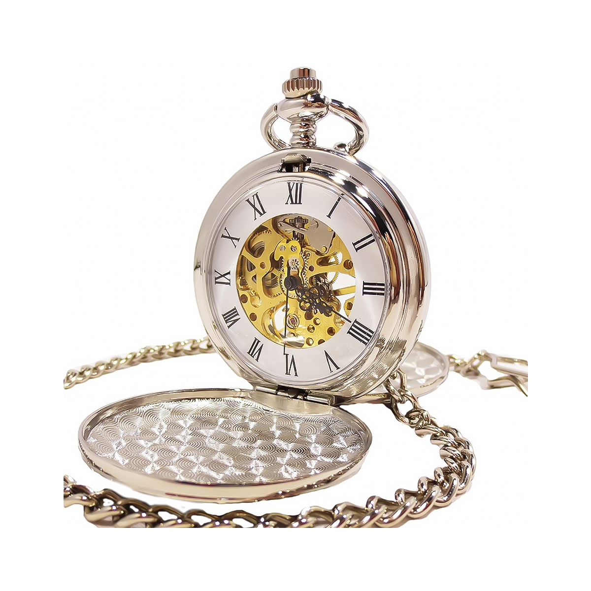 懐中時計 スケルトン ホワイト シルバー アンティーク調 アクセサリー 送料無料