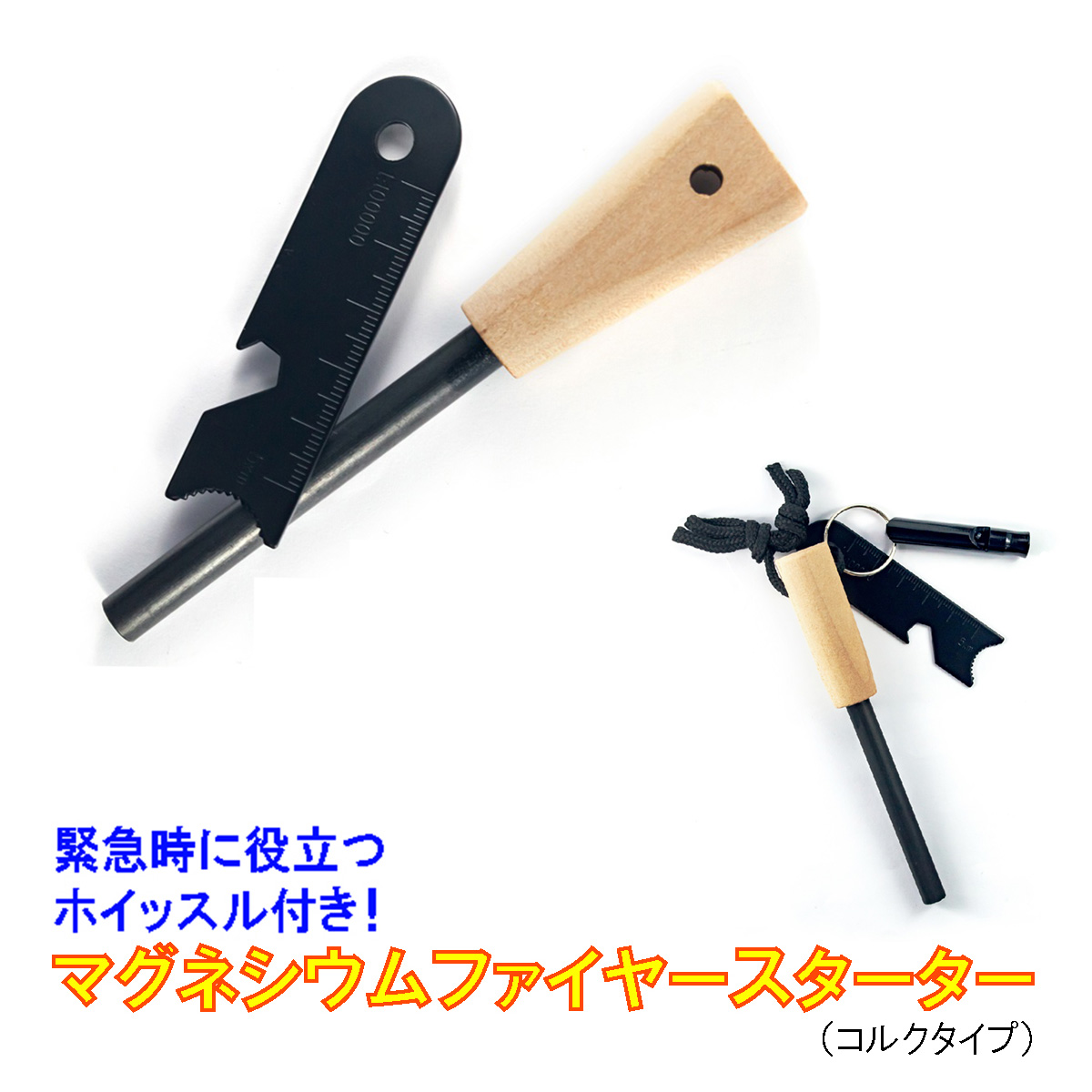 マグネシウム ファイヤースターター ホイッスル セット 火打ち石 コルク 送料無料
