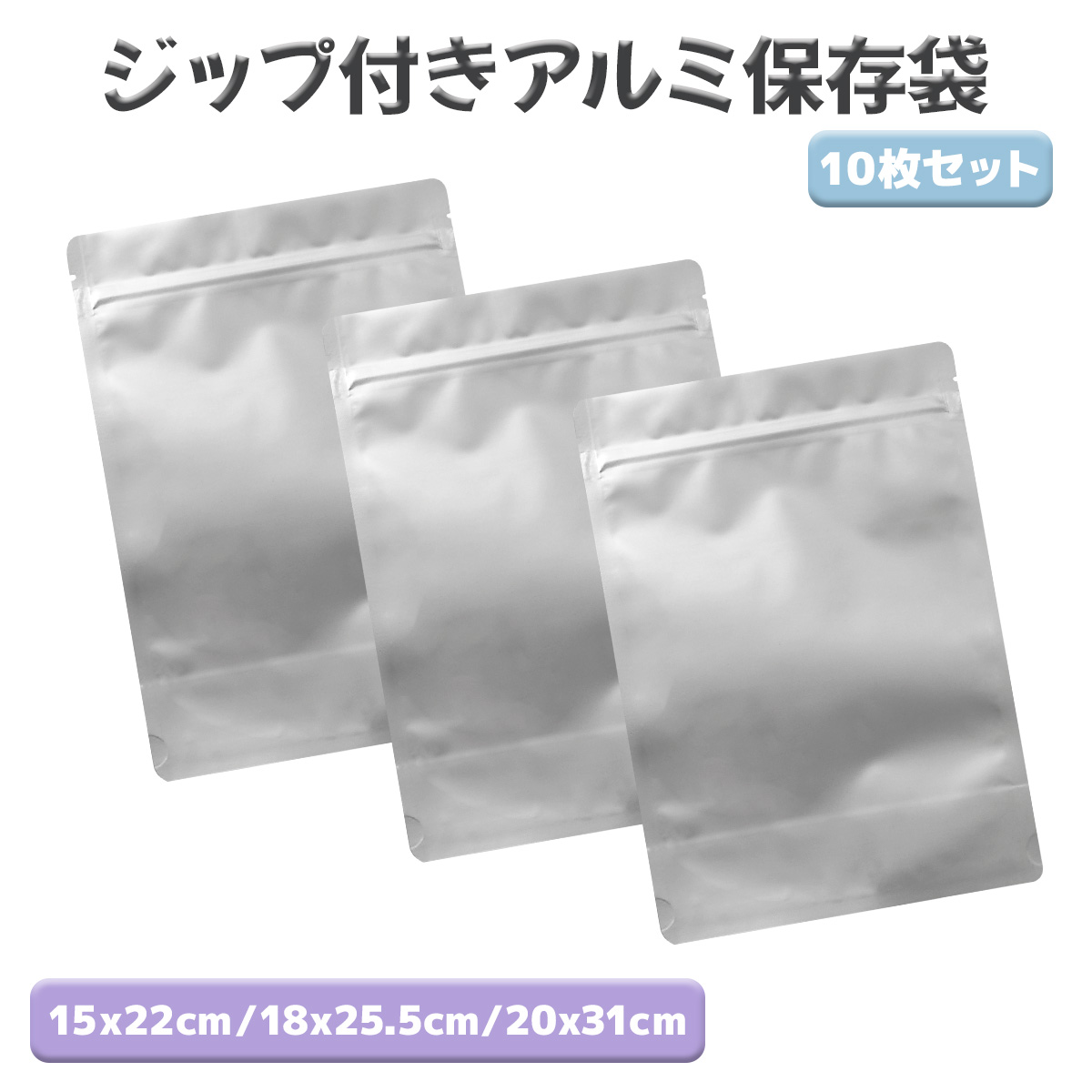 保存袋 アルミ 小分け袋 ジップ付き コーヒー豆・食品保存 防湿・遮光 15x22cm / 18x25.5cm / 20x31cm 各10枚セット 送料無料