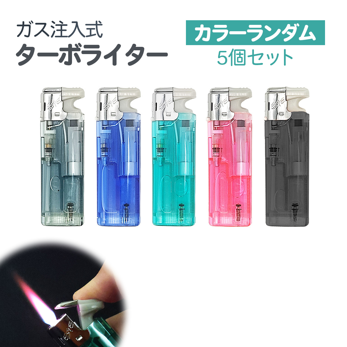 ライター ツインライト ターボ式 ジェットライター 着火用 ガス詰替可タイプ ノーマルプッシュタイプ カラーランダム 5個セット 送料無料