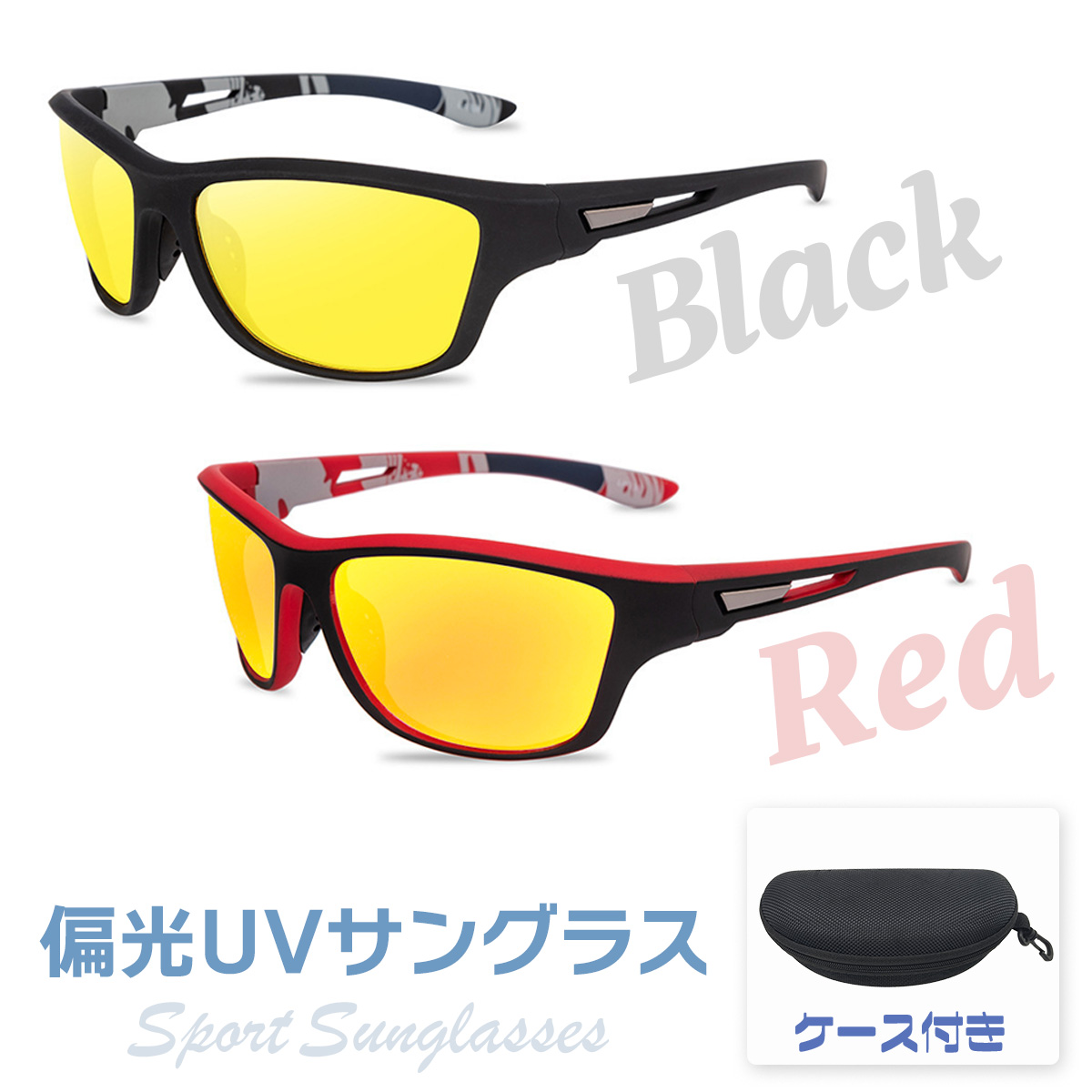 サングラス 夜間用 イエローレンズ 偏光サングラス 収納ケース付 眼鏡拭き付 夜釣り ドライブ 偏光グラス メンズ スポーツサングラス 送料無料