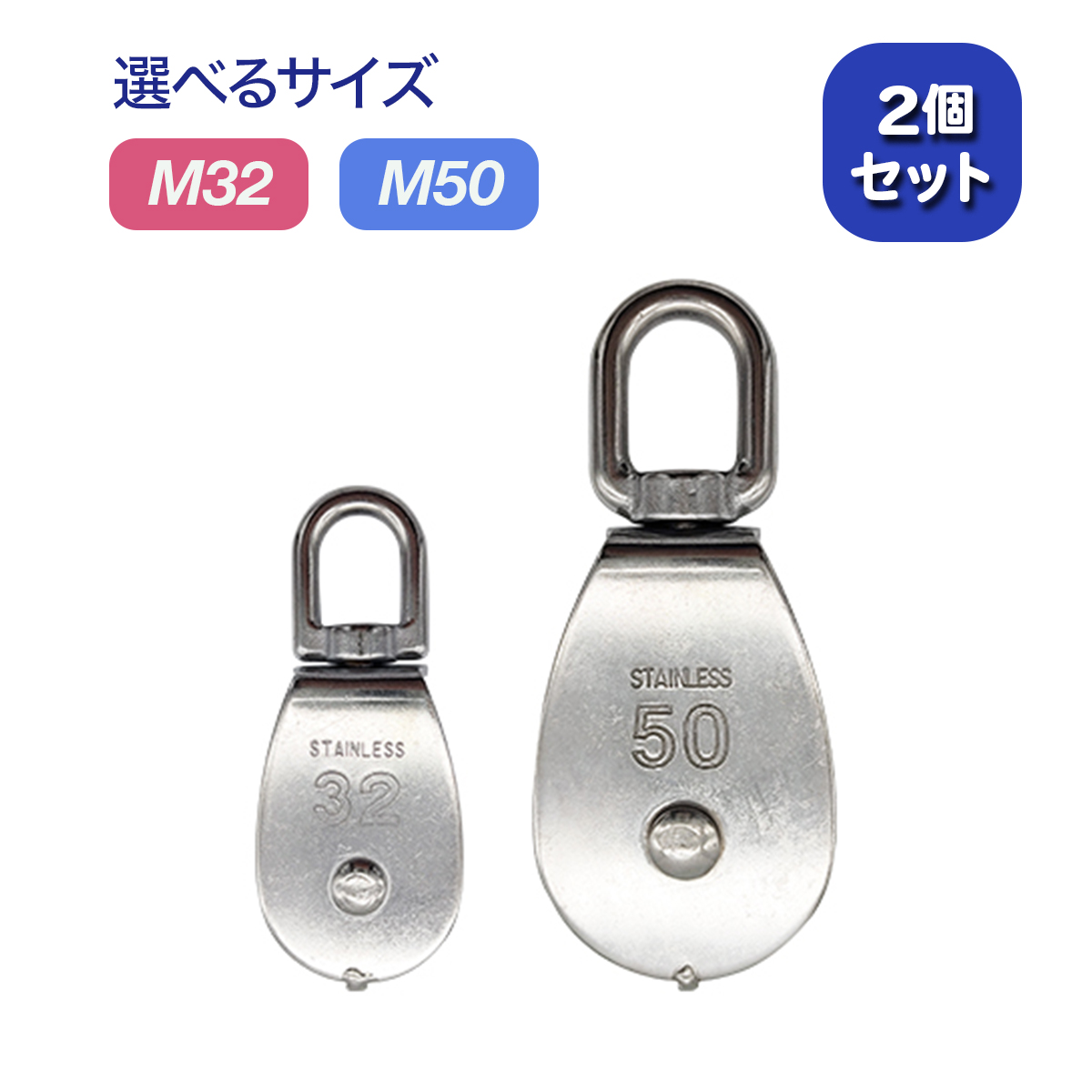 滑車 ローププーリー ステンレス M32 M50 2個セット 屋内 屋外 耐食性 防錆性 耐久性 耐久性 耐摩耗性 高硬度 アウトドア キャンプ 登山 送料無料